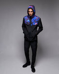Inspirée par les pulsations du mouvement, son design joue sur le contraste entre le noir profond et un empiècement iridescent dynamique, symbole d’intensité et de maîtrise. Ce détail graphique reflète la force intérieure du coureur et la fluidité de son geste.